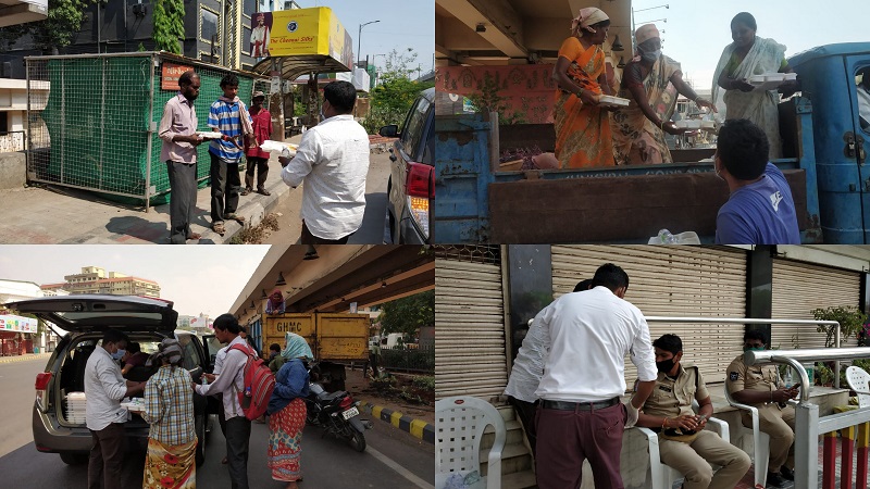 We had started with community services during the lockdown 1.0 for our neighbourhood, distributing packed food packets twice a week in the neighbourhood area for GHMC workers, traffic police team, cleaners, people travelling by road to homes and more. There has been a peak rise in distribution of essential items and groceries during mid of lockdown 1.0 to lockdown 2.0 when we distributed grocery and essential in the camp areas of daily labourers. We have been distributing food and essentials in government schools where refugee camps was created for people who needed it. We have also been working on medicine and emergency essential delivery for the elderly people living within a radius of 5 km as we have been receiving a lot of calls for buying medicine, gloves, mask, and sanitizers for such elderly people living alone.